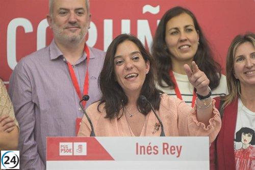 Inés Rey (PSdeG) celebra su reelección como alcaldesa de A Coruña.