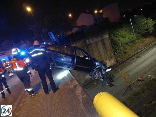 Buscan a ocupantes de vehículo colgado del puente de Joane.