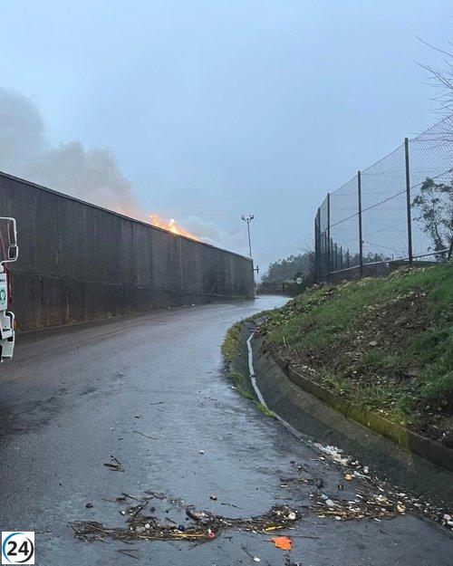 Incendio controlado en nave de reciclaje en Vigo con acumulación de residuos.
